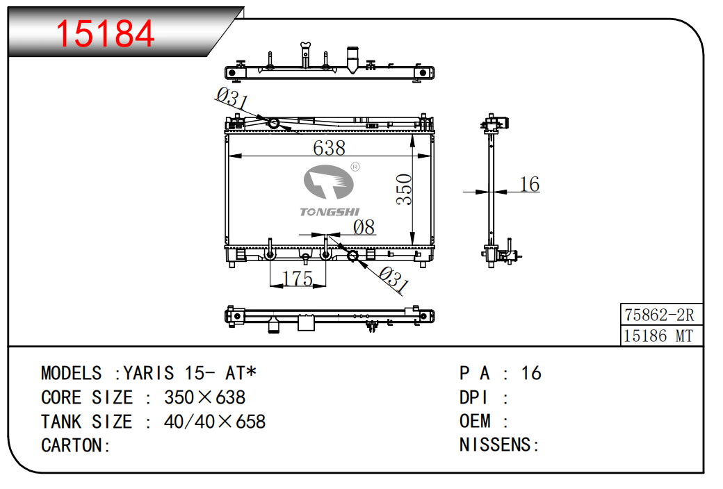 适用于沃尔沃V40 1.9TD D4192T 95- MT散热器