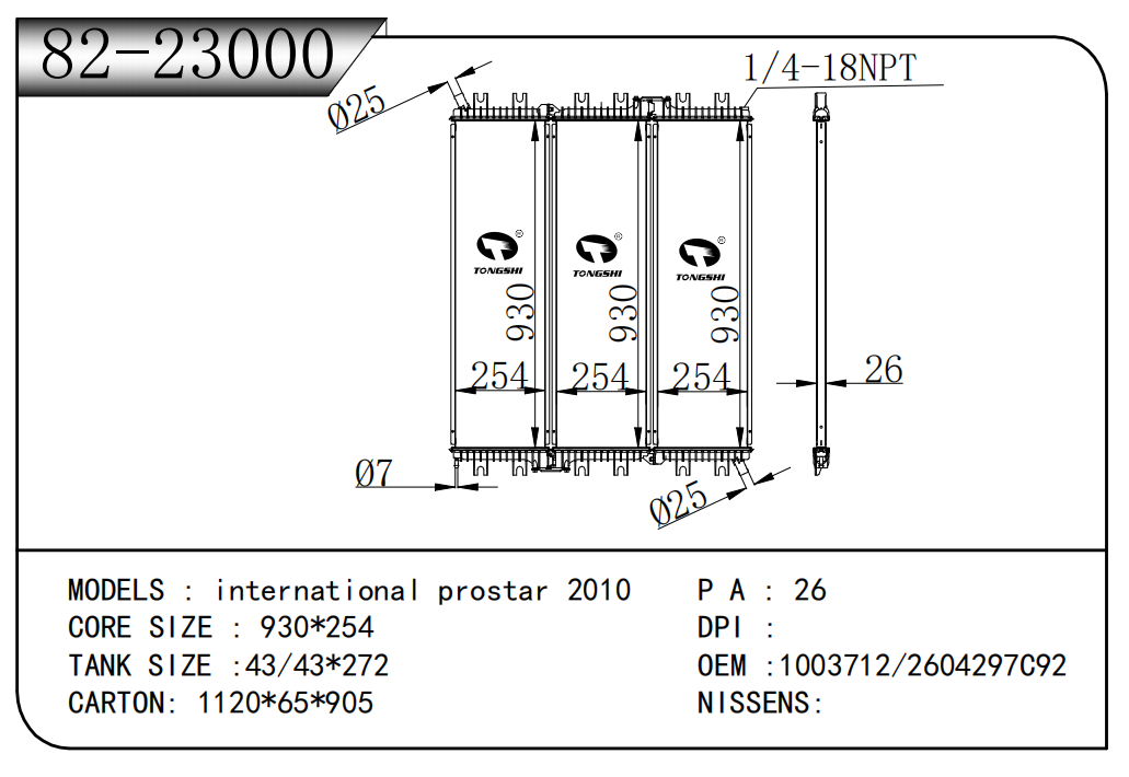 适用于FREIGHTLINER CASCADIA 125/ 113 L6 12.8L 12-13 AT散热器