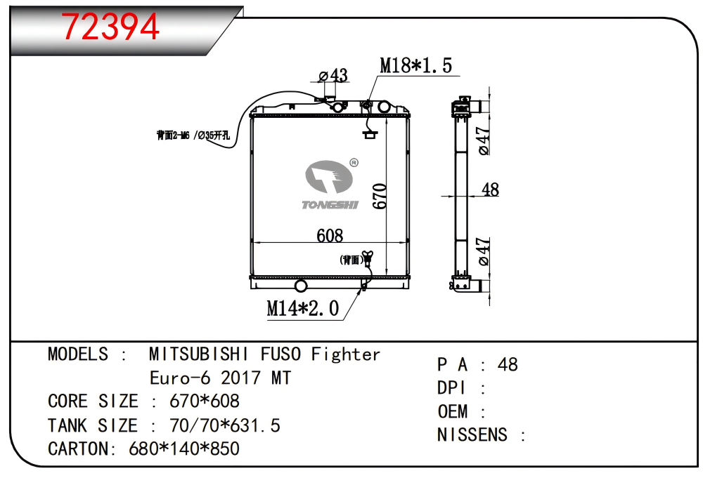 适用于FREIGHTLINER CASCADIA 125/ 113 L6 12.8L 12-13 AT散热器