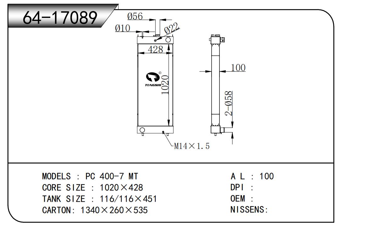 适用于FREIGHTLINER CASCADIA 125/ 113 L6 12.8L 12-13 AT散热器