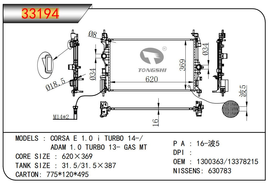 适用于沃尔沃V40 1.9TD D4192T 95- MT散热器