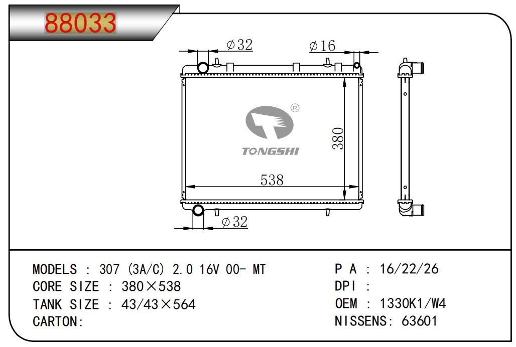 适用于沃尔沃V40 1.9TD D4192T 95- MT散热器