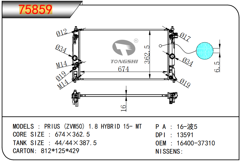 适用于FREIGHTLINER CASCADIA 125/ 113 L6 12.8L 12-13 AT散热器