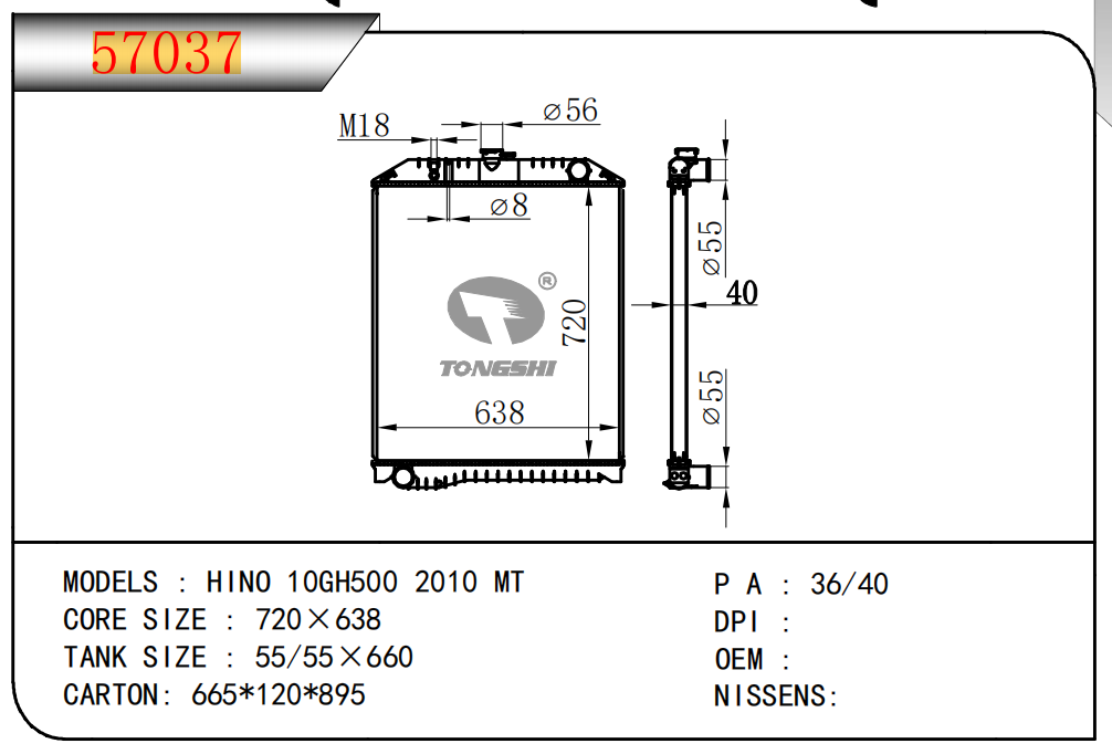 适用于FREIGHTLINER CASCADIA 125/ 113 L6 12.8L 12-13 AT散热器