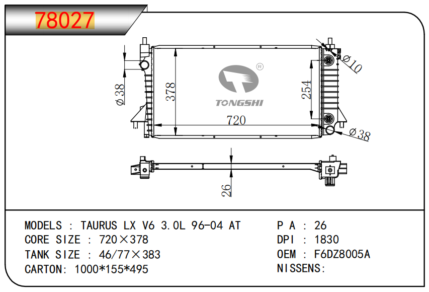 适用于沃尔沃V40 1.9TD D4192T 95- MT散热器