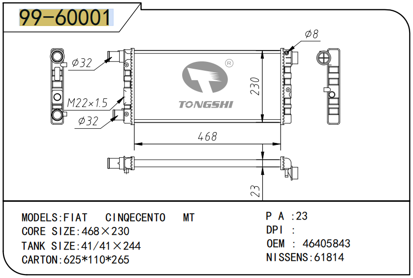 适用于宝马E30 320 i 82-93 AT散热器