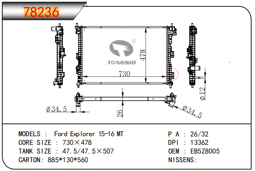 适用于FREIGHTLINER CASCADIA 125/ 113 L6 12.8L 12-13 AT散热器
