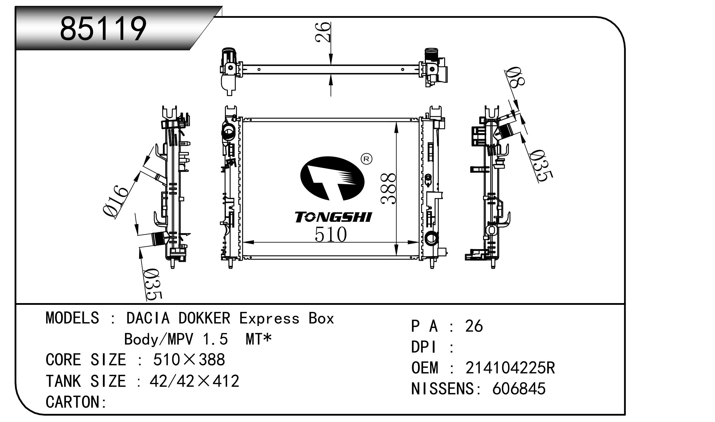 适用于沃尔沃V40 1.9TD D4192T 95- MT散热器