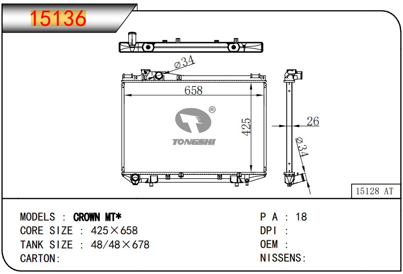 适用于FREIGHTLINER CASCADIA 125/ 113 L6 12.8L 12-13 AT散热器