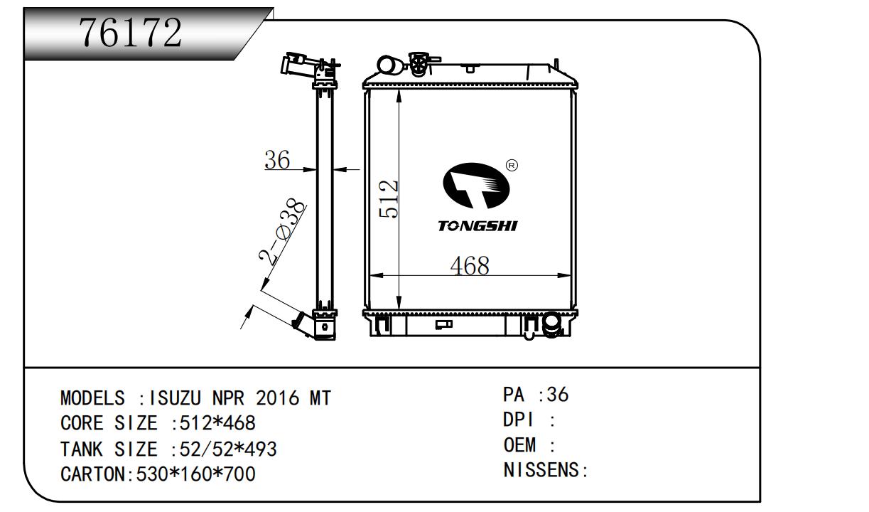 适用于FREIGHTLINER CASCADIA 125/ 113 L6 12.8L 12-13 AT散热器