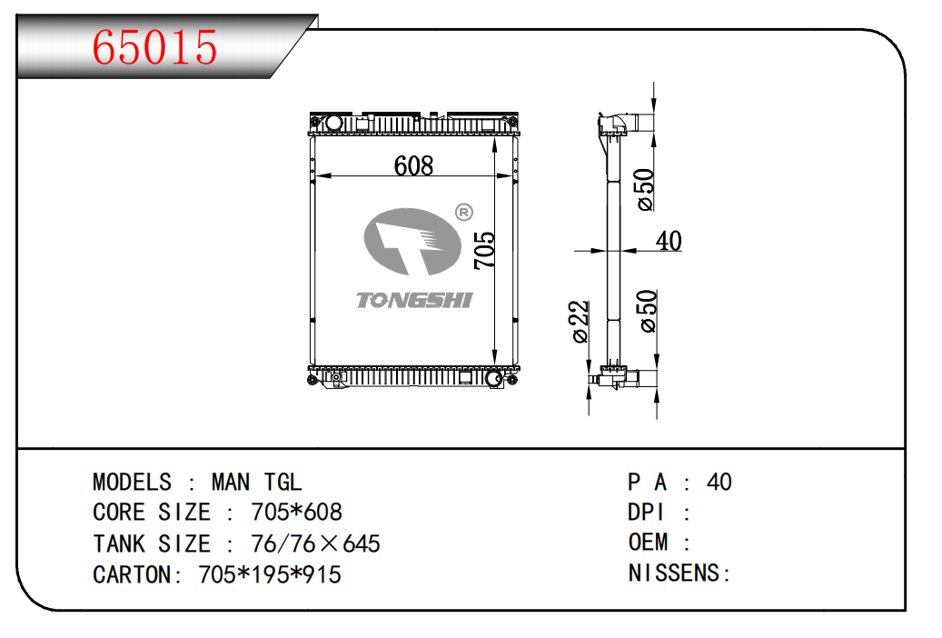 适用于FREIGHTLINER CASCADIA 125/ 113 L6 12.8L 12-13 AT散热器