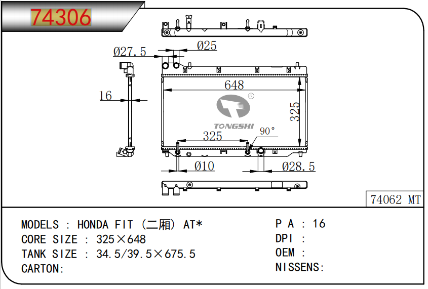 适用于宝马E30 320 i 82-93 AT散热器