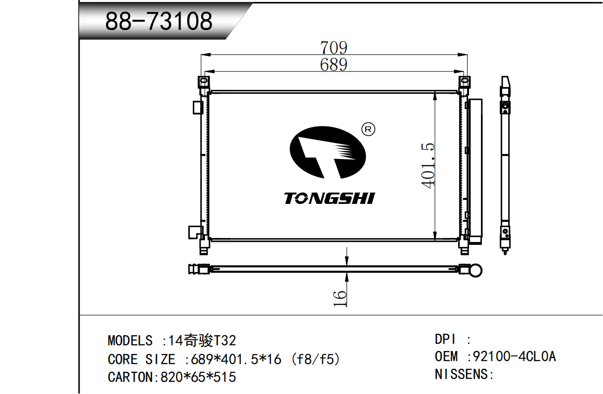 适用于奇瑞瑞虎(新款) MT散热器