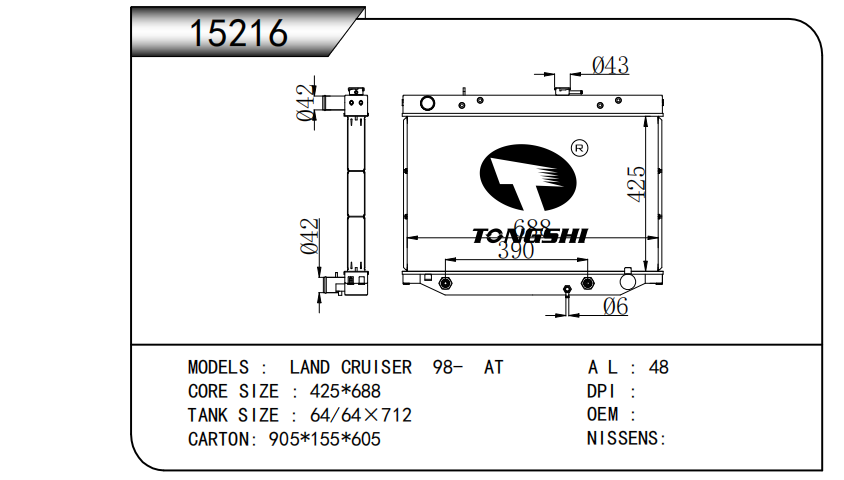 适用于沃尔沃V40 1.9TD D4192T 95- MT散热器