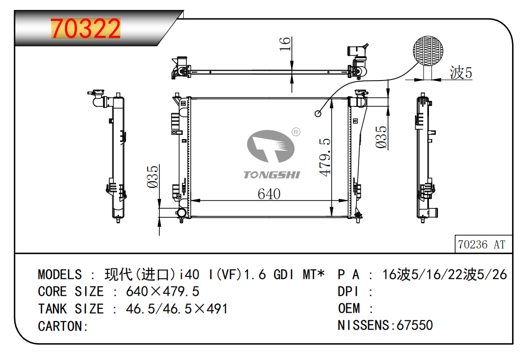 适用于宝马E30 320 i 82-93 AT散热器