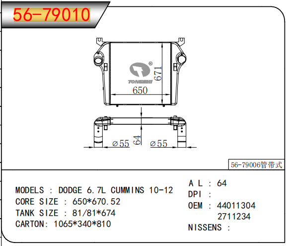 适用于FREIGHTLINER CASCADIA 125/ 113 L6 12.8L 12-13 AT散热器
