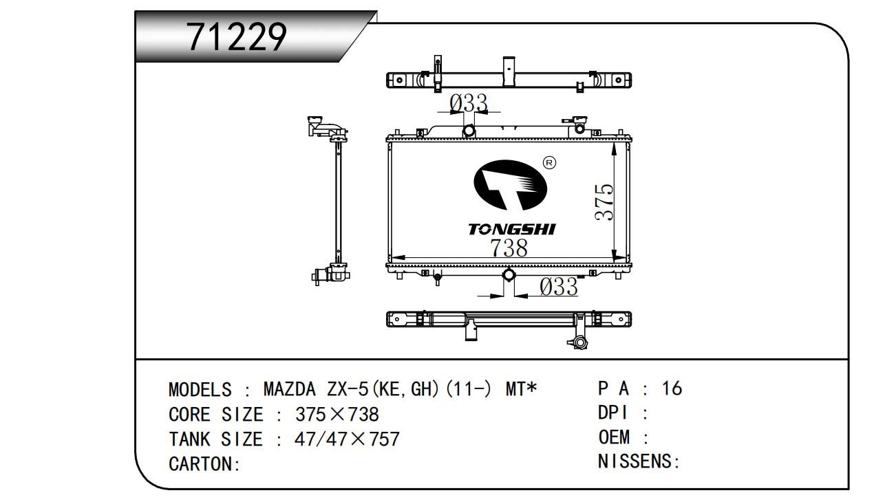 适用于奇瑞瑞虎(新款) MT散热器