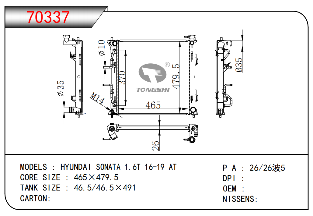 适用于奇瑞瑞虎(新款) MT散热器