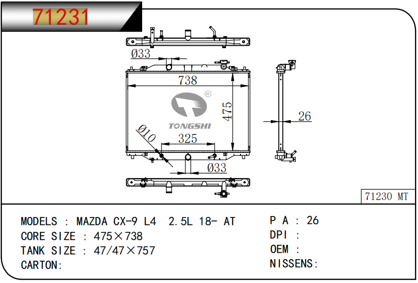 适用于奇瑞瑞虎(新款) MT散热器