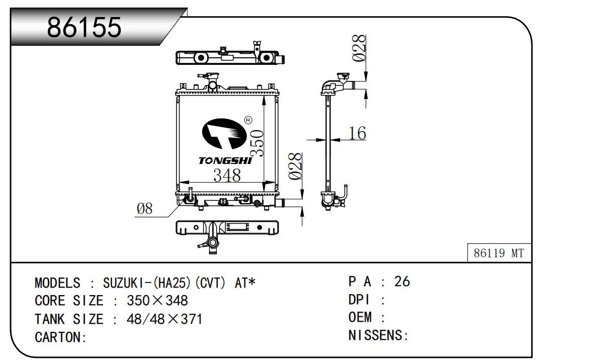 适用于奇瑞瑞虎(新款) MT散热器