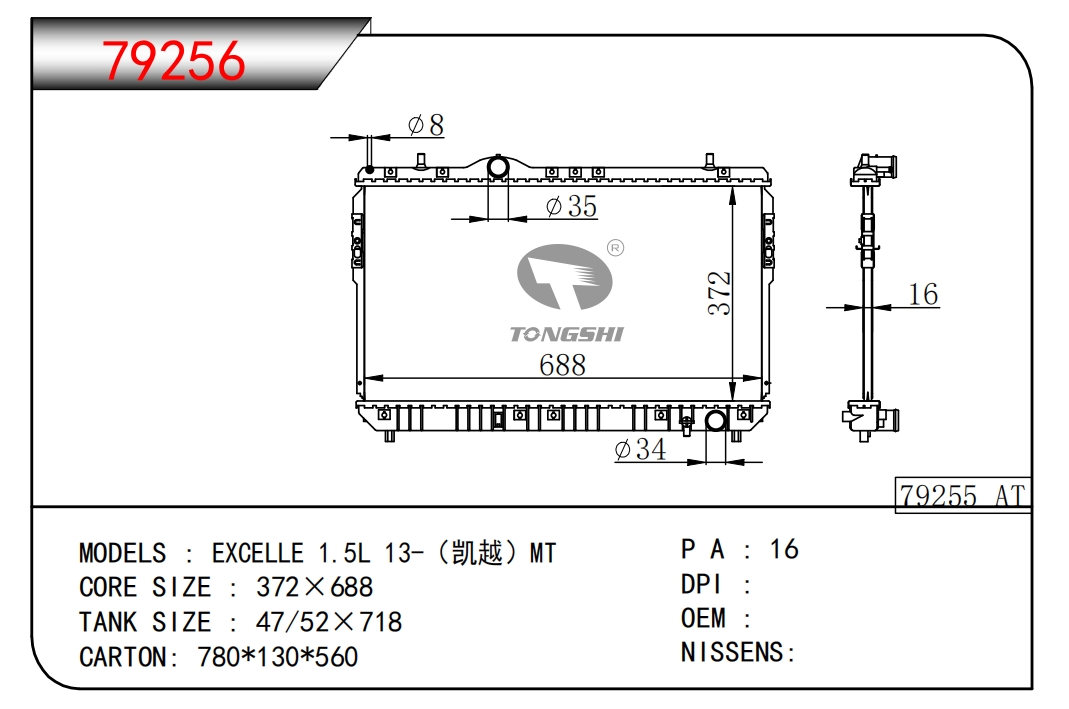 适用于奇瑞瑞虎(新款) MT散热器