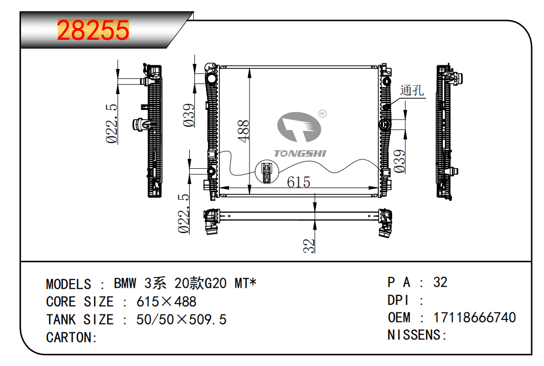 适用于宝马E30 320 i 82-93 AT散热器