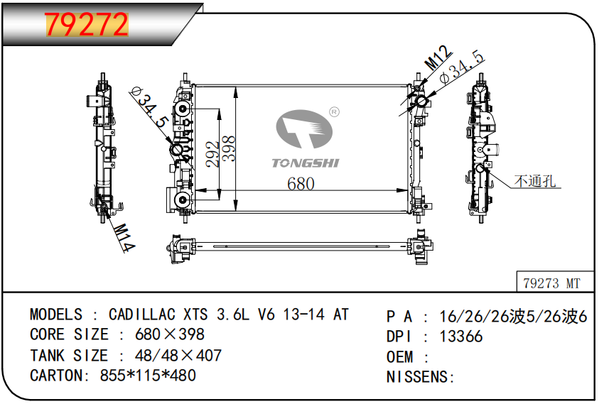 适用于FREIGHTLINER CASCADIA 125/ 113 L6 12.8L 12-13 AT散热器