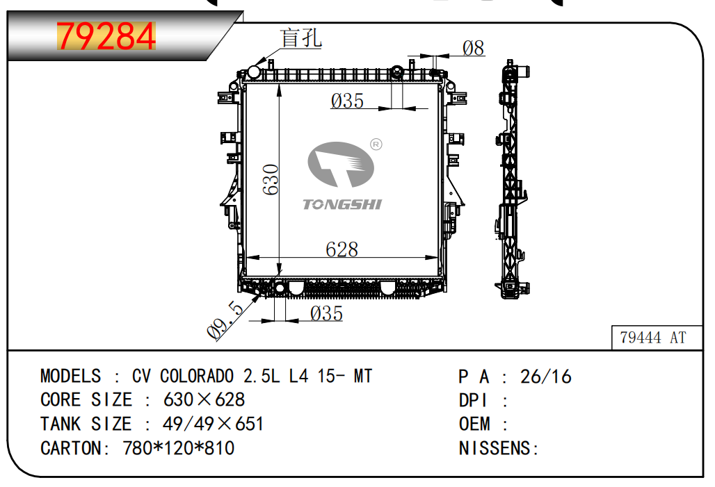 适用于沃尔沃V40 1.9TD D4192T 95- MT散热器