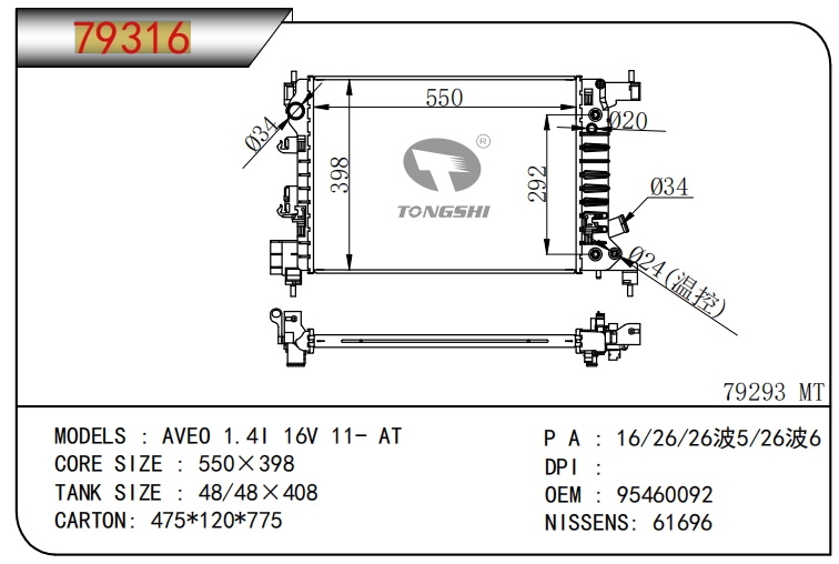 适用于沃尔沃V40 1.9TD D4192T 95- MT散热器