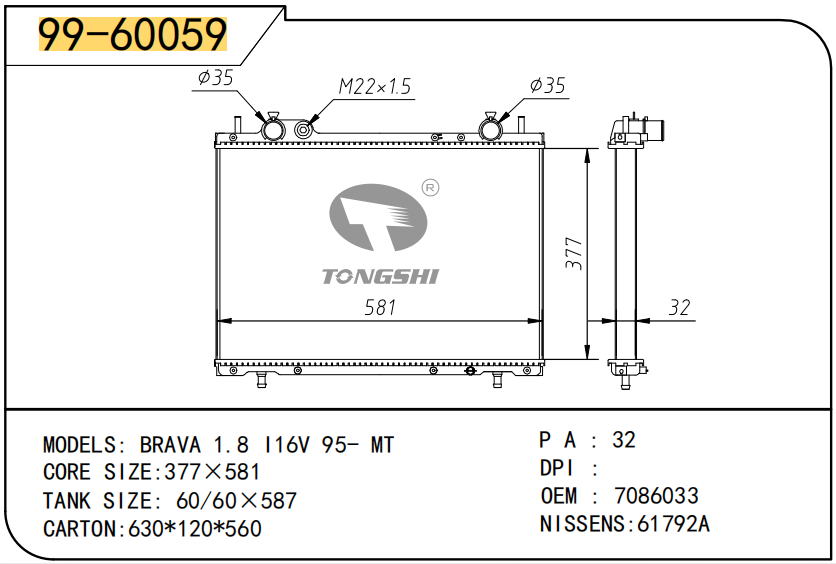 适用于沃尔沃V40 1.9TD D4192T 95- MT散热器