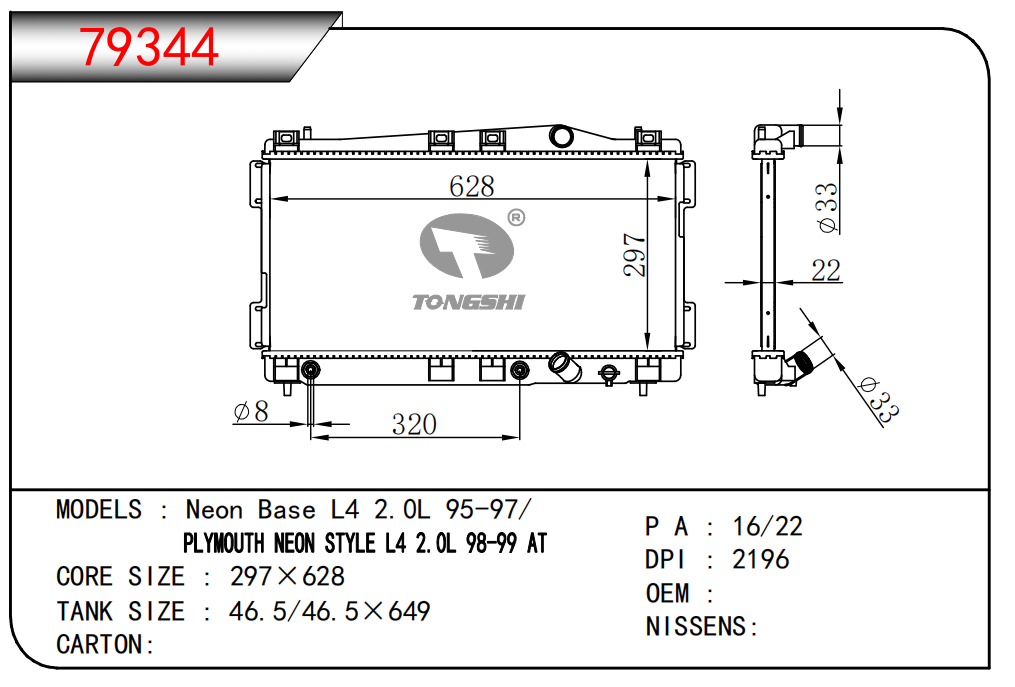 适用于沃尔沃V40 1.9TD D4192T 95- MT散热器