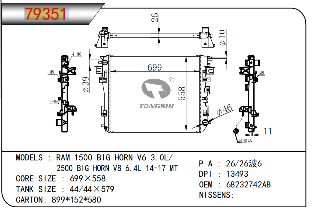 适用于奇瑞瑞虎(新款) MT散热器