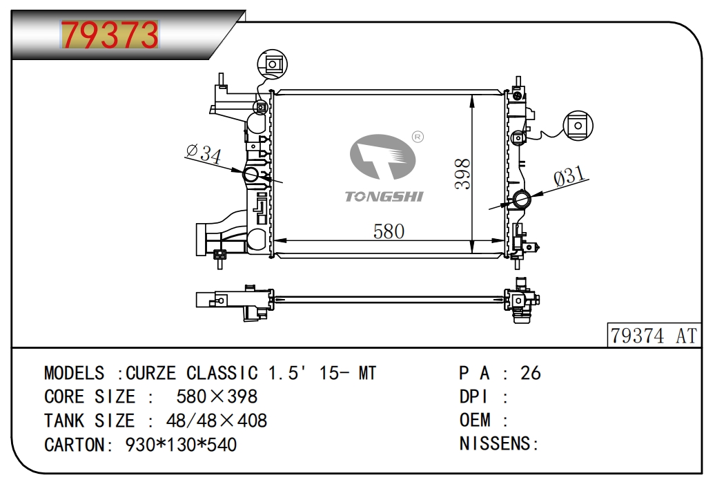 适用于沃尔沃V40 1.9TD D4192T 95- MT散热器