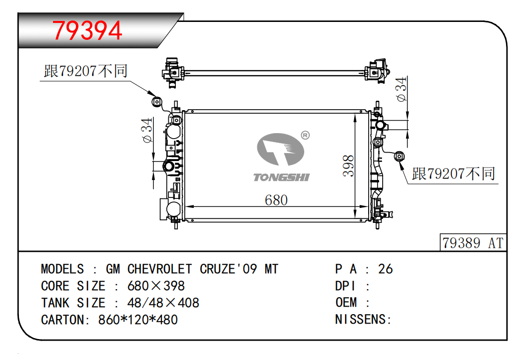 适用于沃尔沃V40 1.9TD D4192T 95- MT散热器