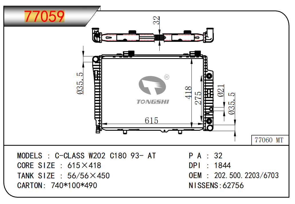适用于宝马E30 320 i 82-93 AT散热器