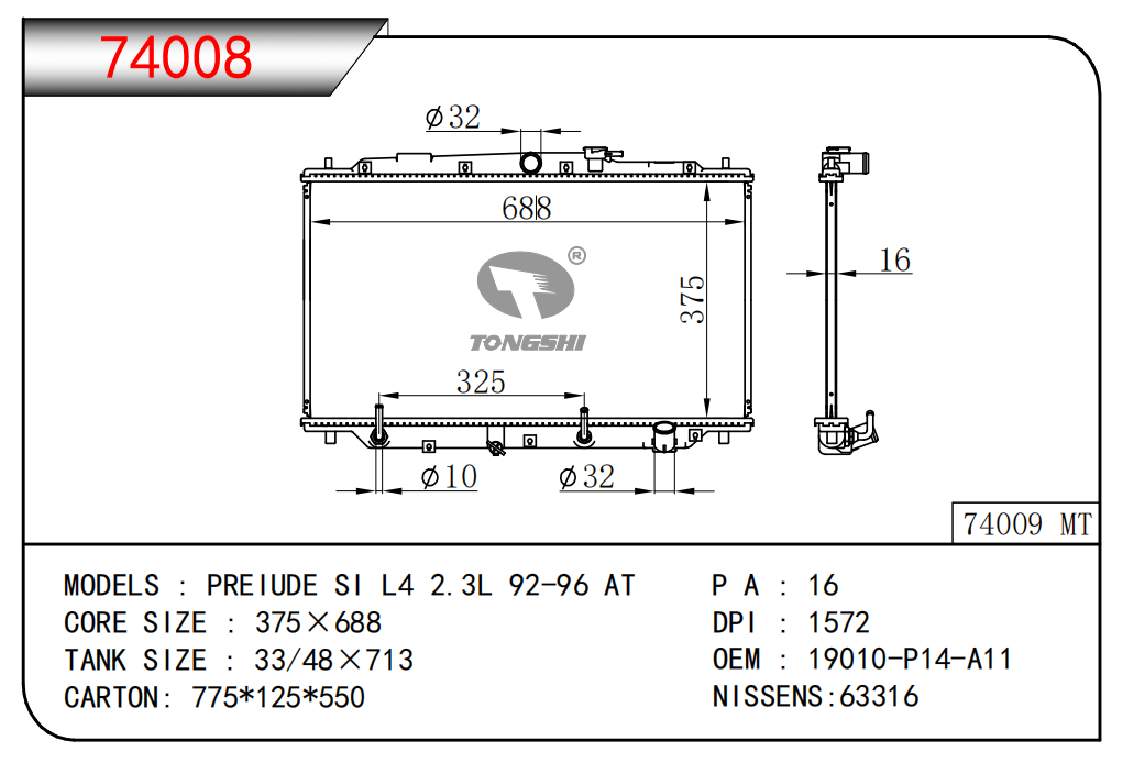 适用于沃尔沃V40 1.9TD D4192T 95- MT散热器