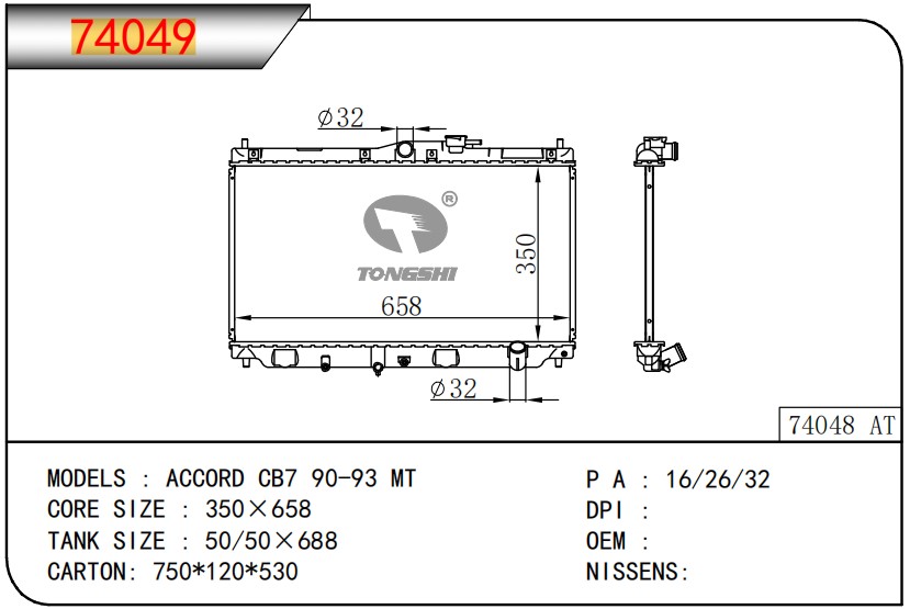 适用于宝马E30 320 i 82-93 AT散热器