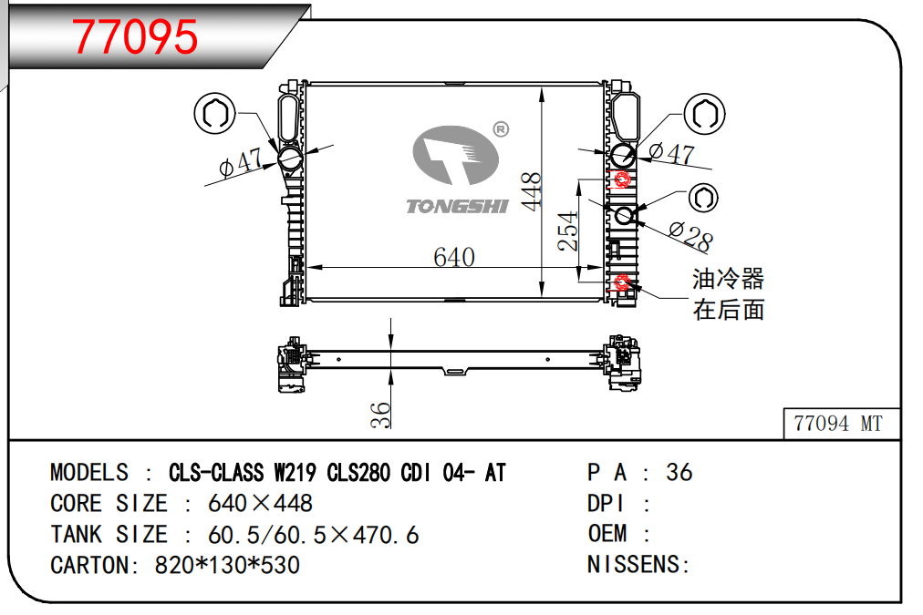适用于沃尔沃V40 1.9TD D4192T 95- MT散热器