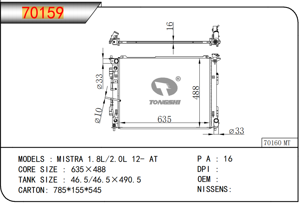 适用于沃尔沃V40 1.9TD D4192T 95- MT散热器