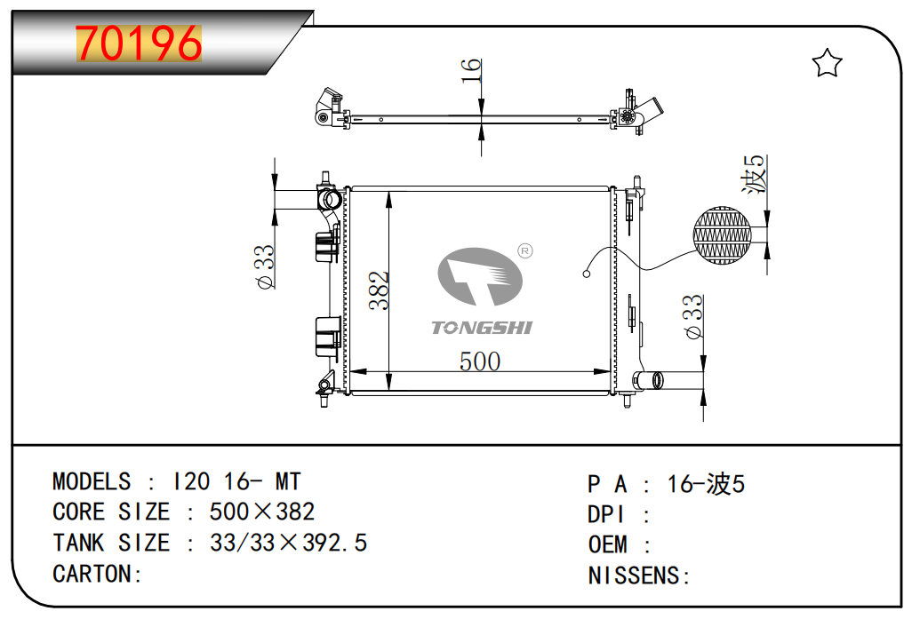 适用于沃尔沃V40 1.9TD D4192T 95- MT散热器
