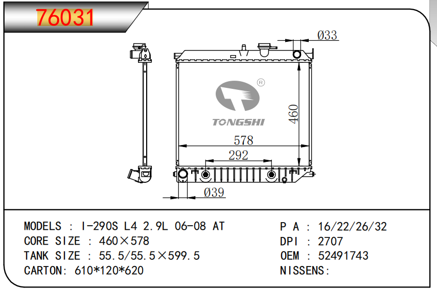 适用于沃尔沃V40 1.9TD D4192T 95- MT散热器