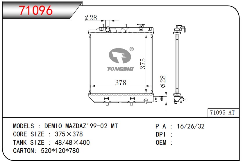 适用于沃尔沃V40 1.9TD D4192T 95- MT散热器