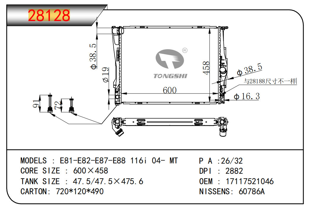 适用于宝马E30 320 i 82-93 AT散热器