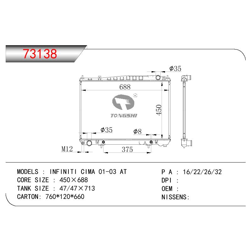 适用于FREIGHTLINER CASCADIA 125/ 113 L6 12.8L 12-13 AT散热器