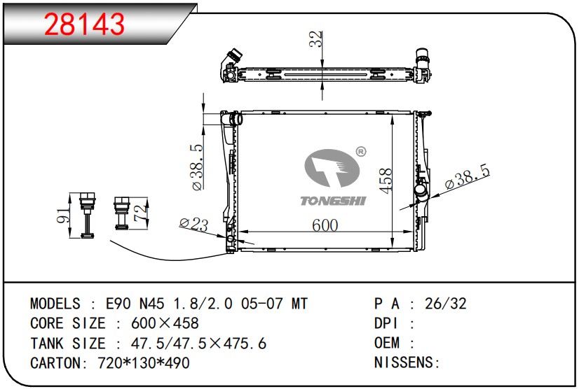 适用于宝马E30 320 i 82-93 AT散热器