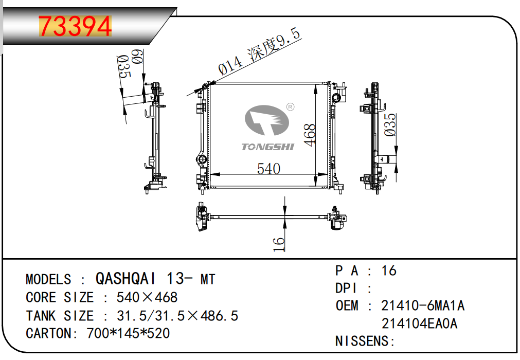 适用于沃尔沃V40 1.9TD D4192T 95- MT散热器