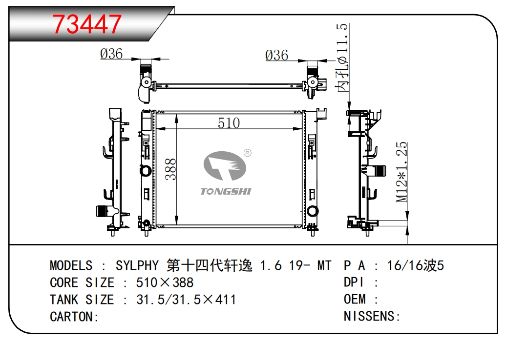 适用于奇瑞瑞虎(新款) MT散热器