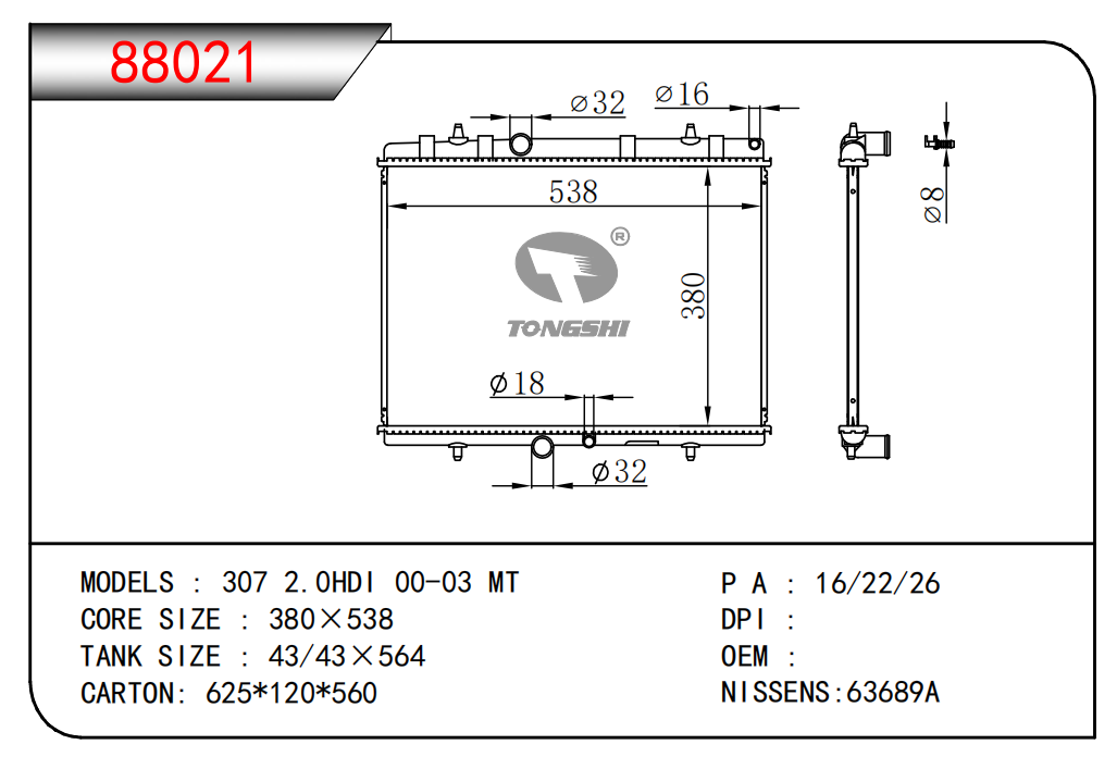 适用于沃尔沃V40 1.9TD D4192T 95- MT散热器