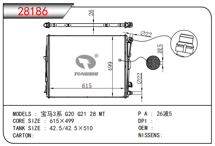 适用于宝马E30 320 i 82-93 AT散热器