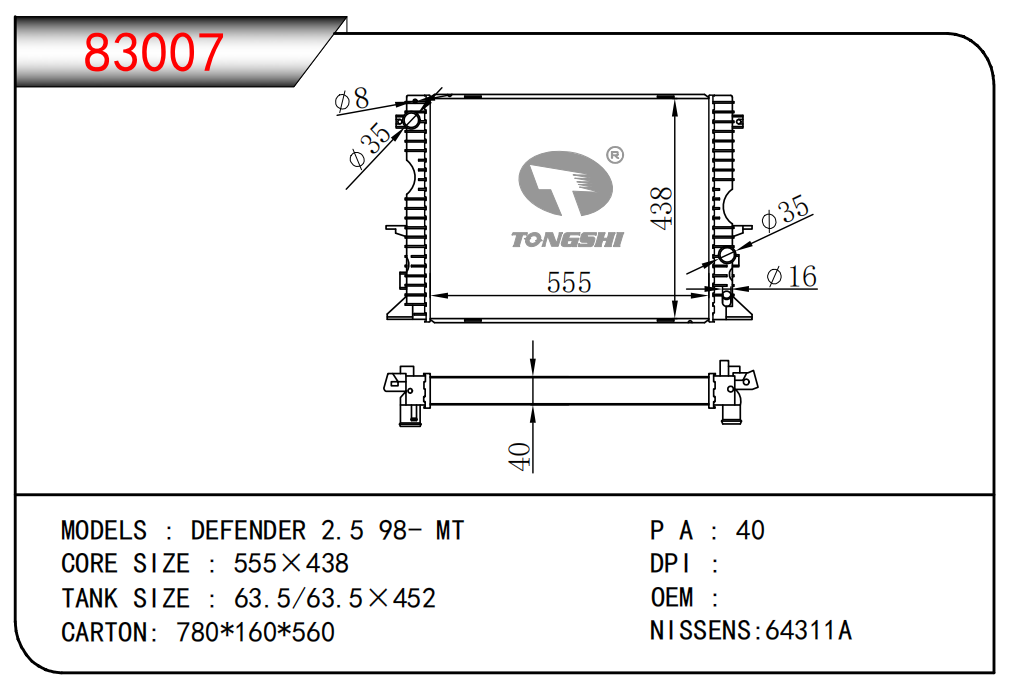 适用于沃尔沃V40 1.9TD D4192T 95- MT散热器